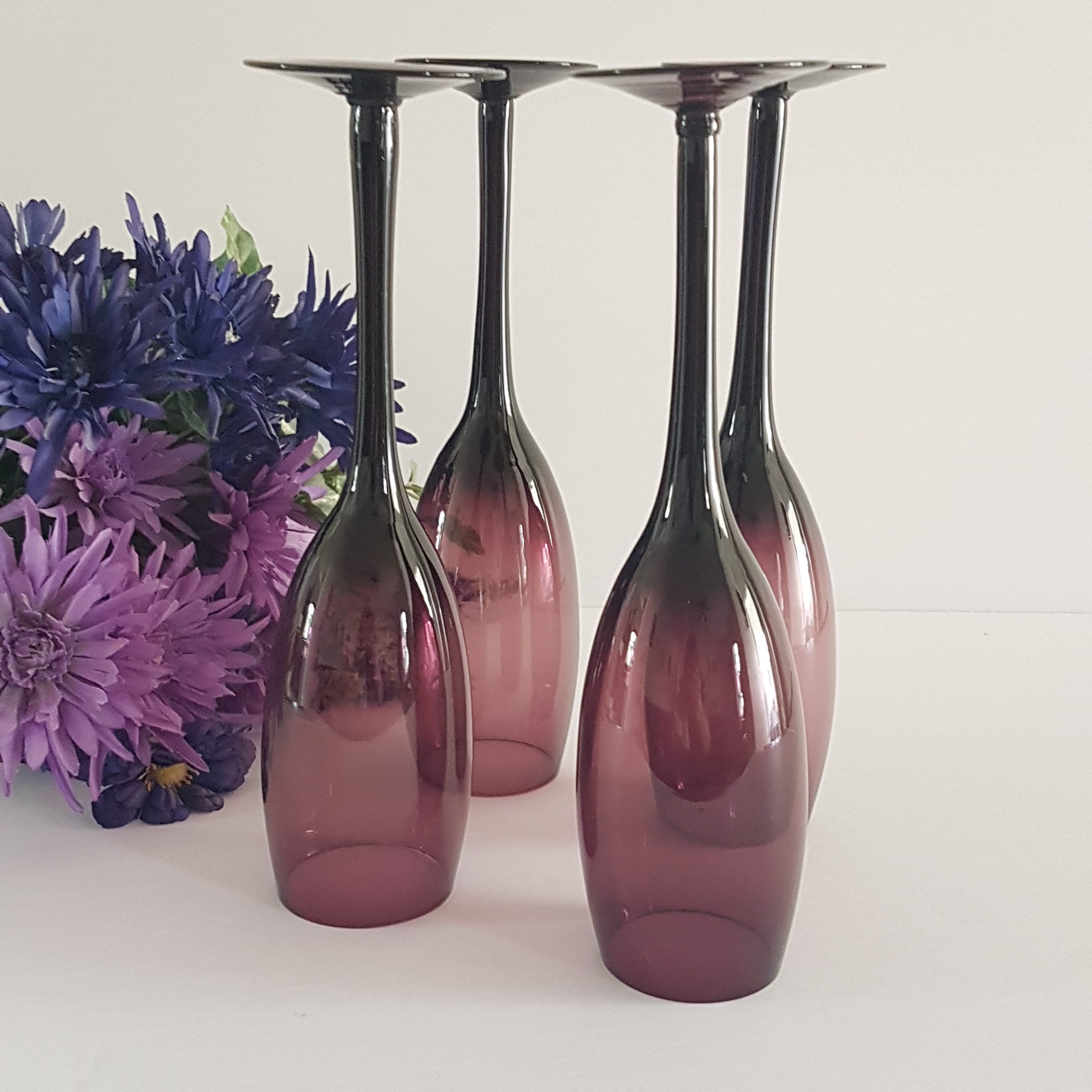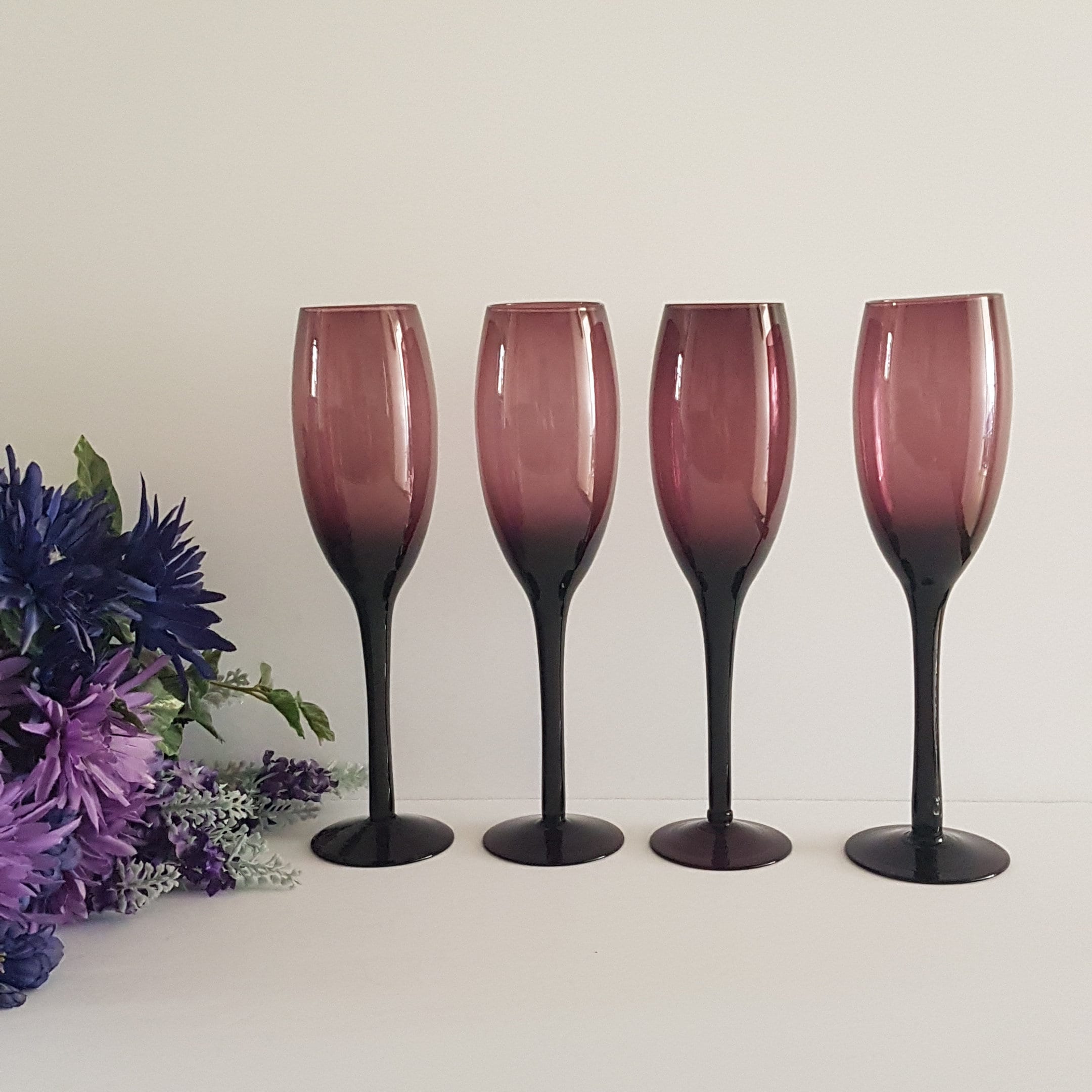 Vintage deep purple champagne glasses, perfect for celebrations!